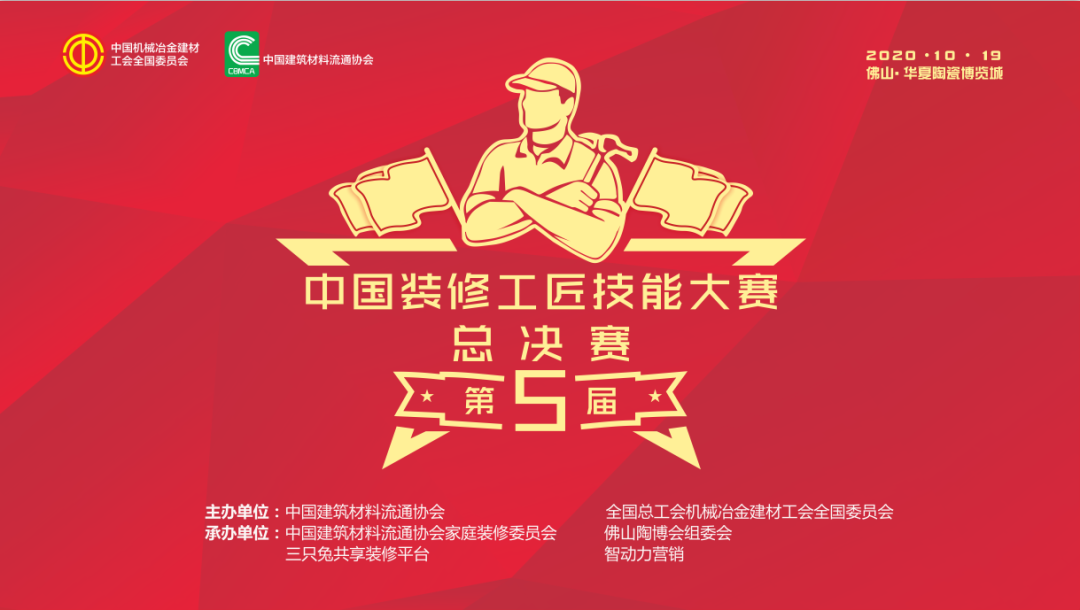 由中国建筑材料流通协会、全国总工会中国机械冶金建材工会全国委员会 主办的第五届中国装修工匠技能大赛总决赛 将于2020年10月19日在佛山·华夏陶瓷博览城隆重举办。